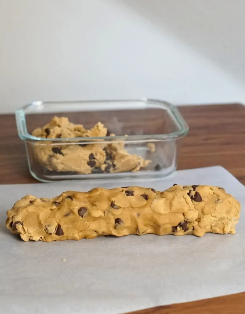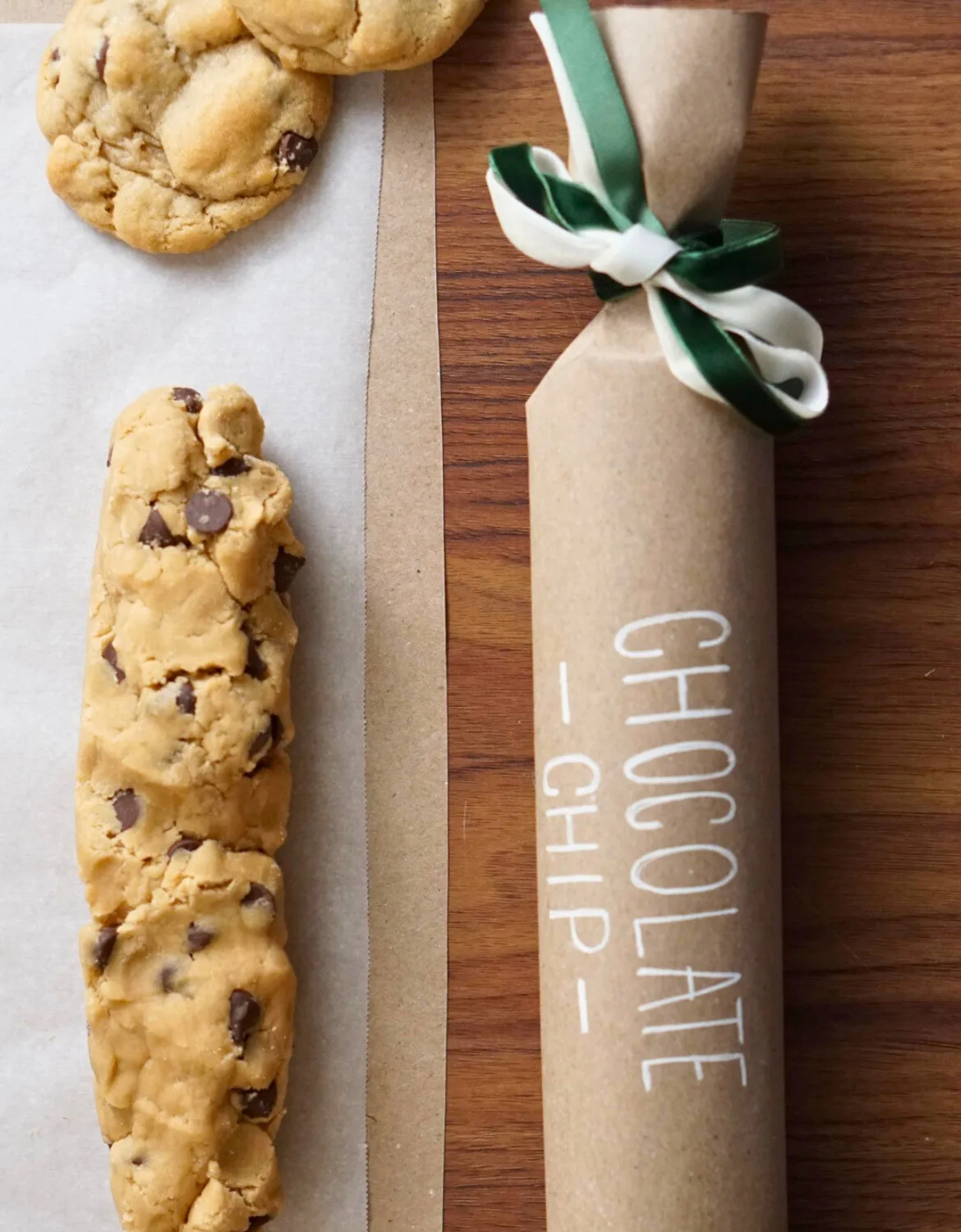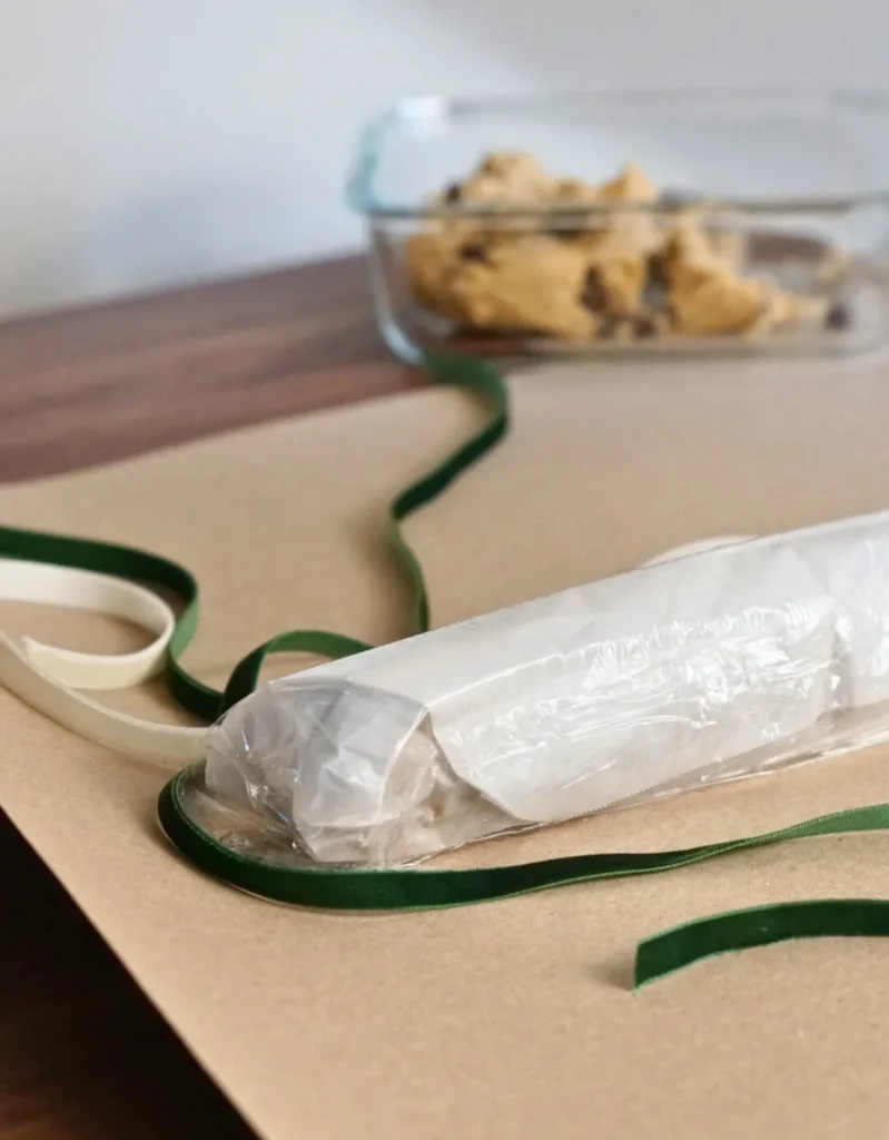 4. Wrap it up in the parchment. (Note: If the dough won’t be used in a couple of days, wrap the parchment-covered log in plastic wrap to keep it extra fresh).