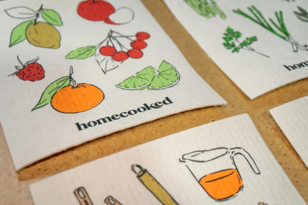 Our cooking-inspired Swedish dishcloths celebrate the everyday joys of the kitchen. Each set of designs features fruits, herbs, pantry staples, and kitchen tools—the same kinds of illustrations you’ll find within the pages of Homecooked. Thoughtfully illustrated in soft, natural colors, they’re as beautiful on display as they are useful in your daily cooking and cleaning routine.
